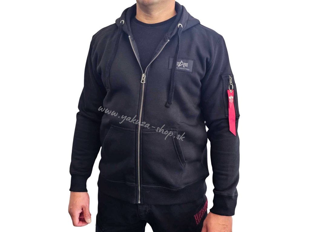 Alpha Industries BACK PRINT ZIP HOODY black pánska mikina