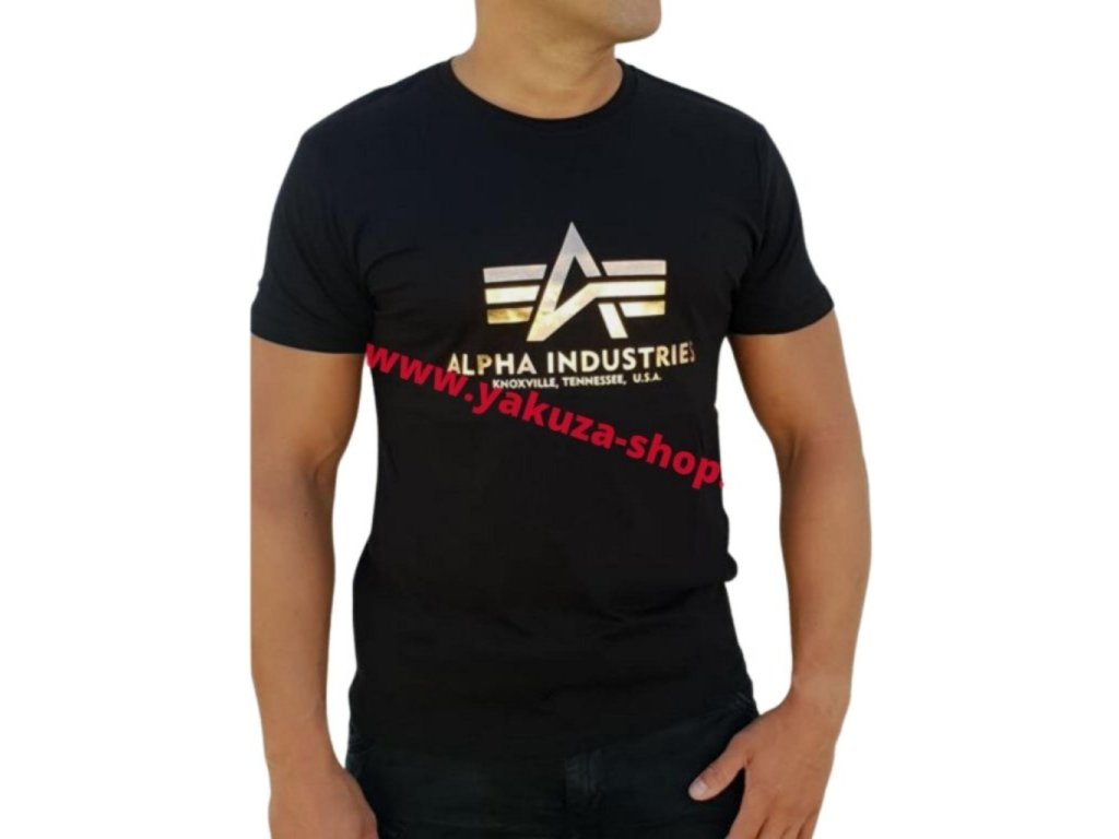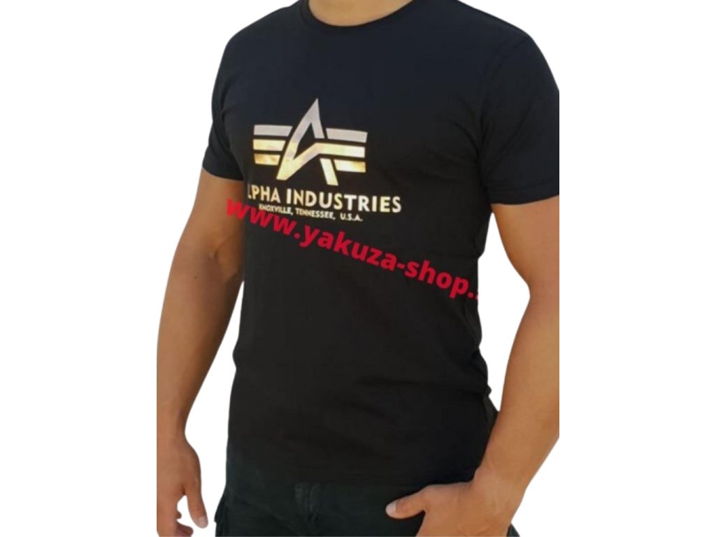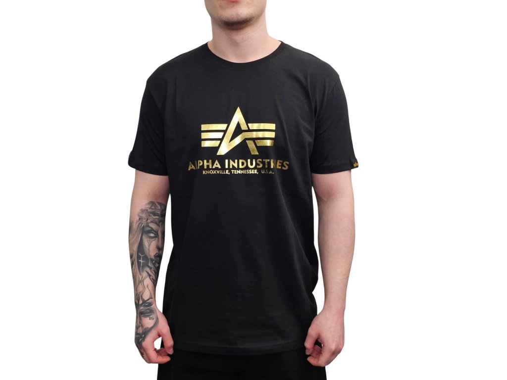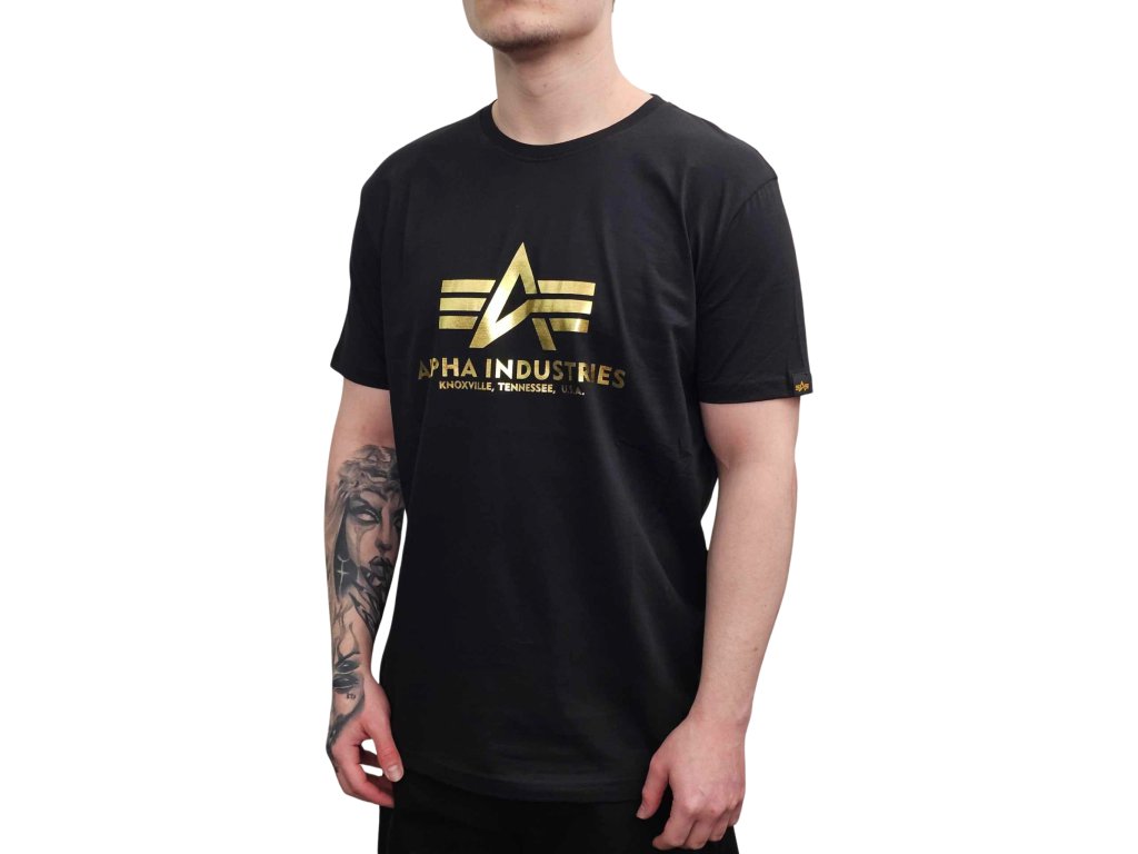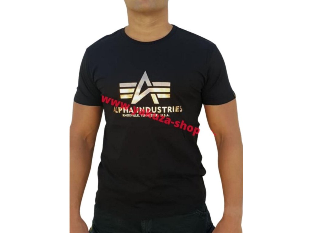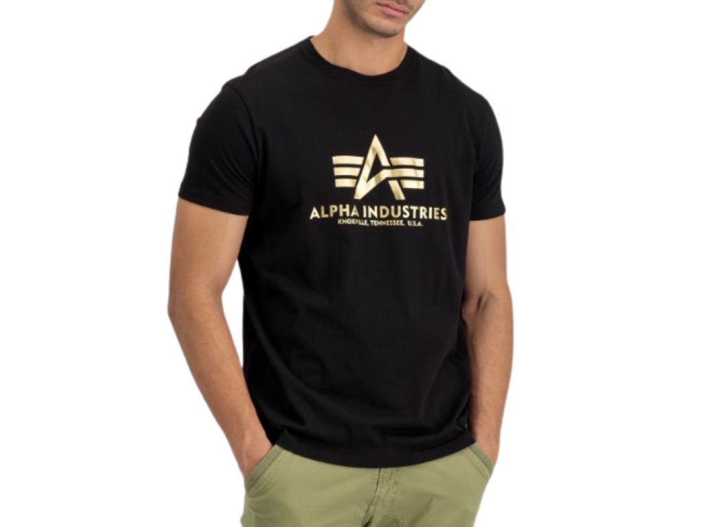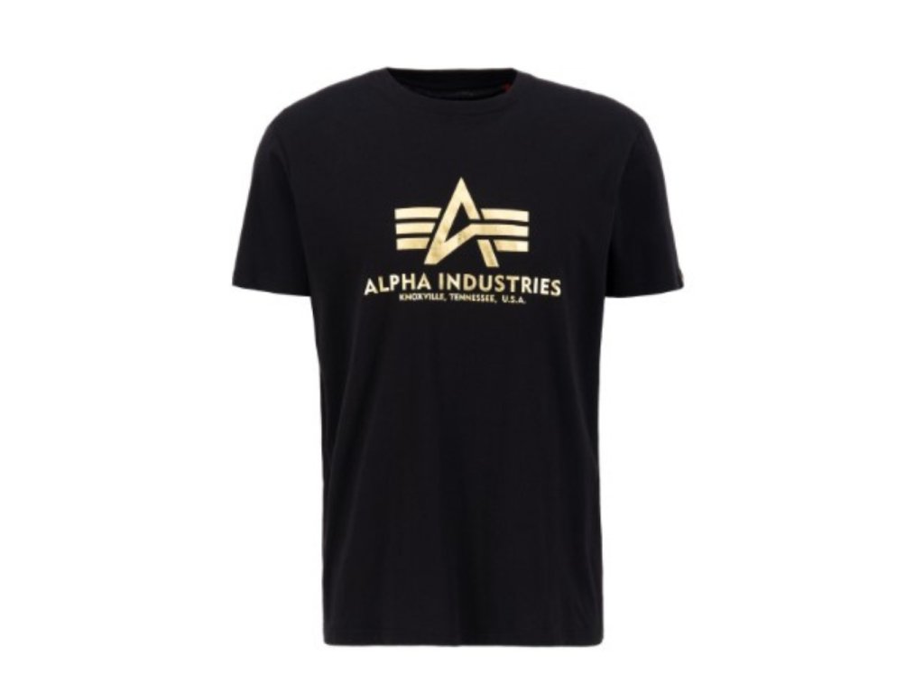 Alpha Industries Basic T Shirt Foil Print Black/Yellow Gold tričko pánske