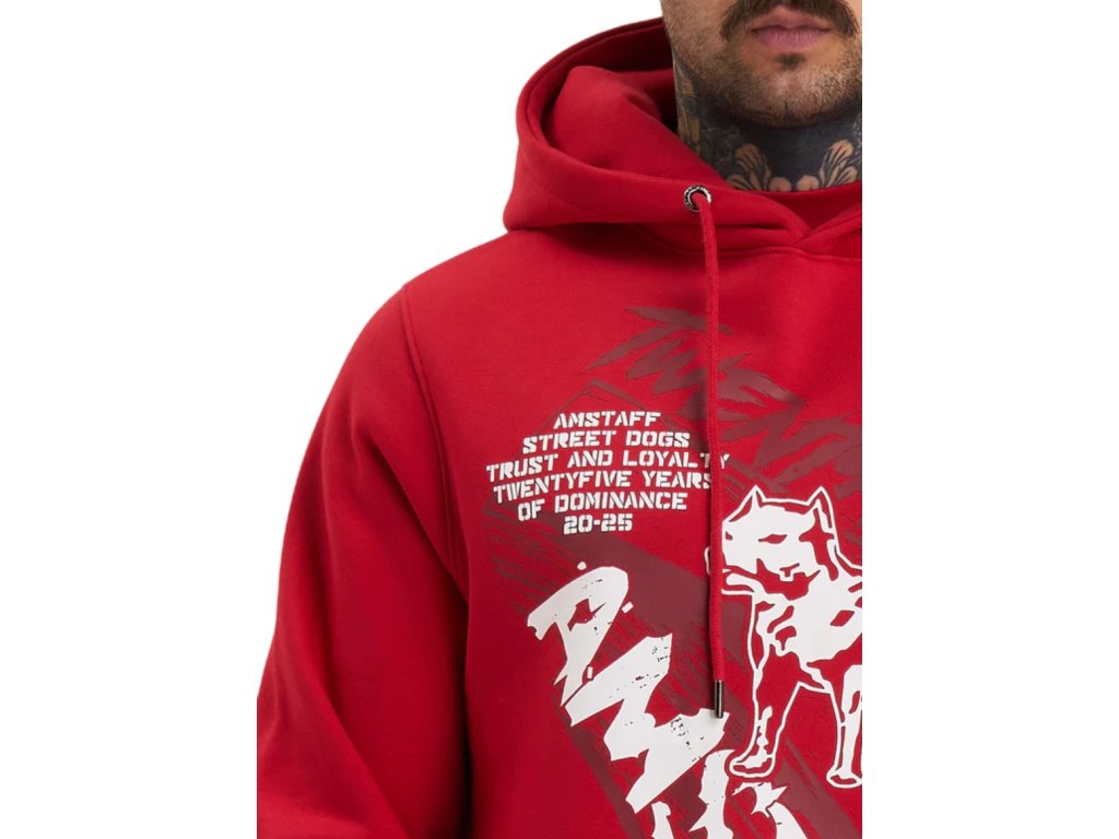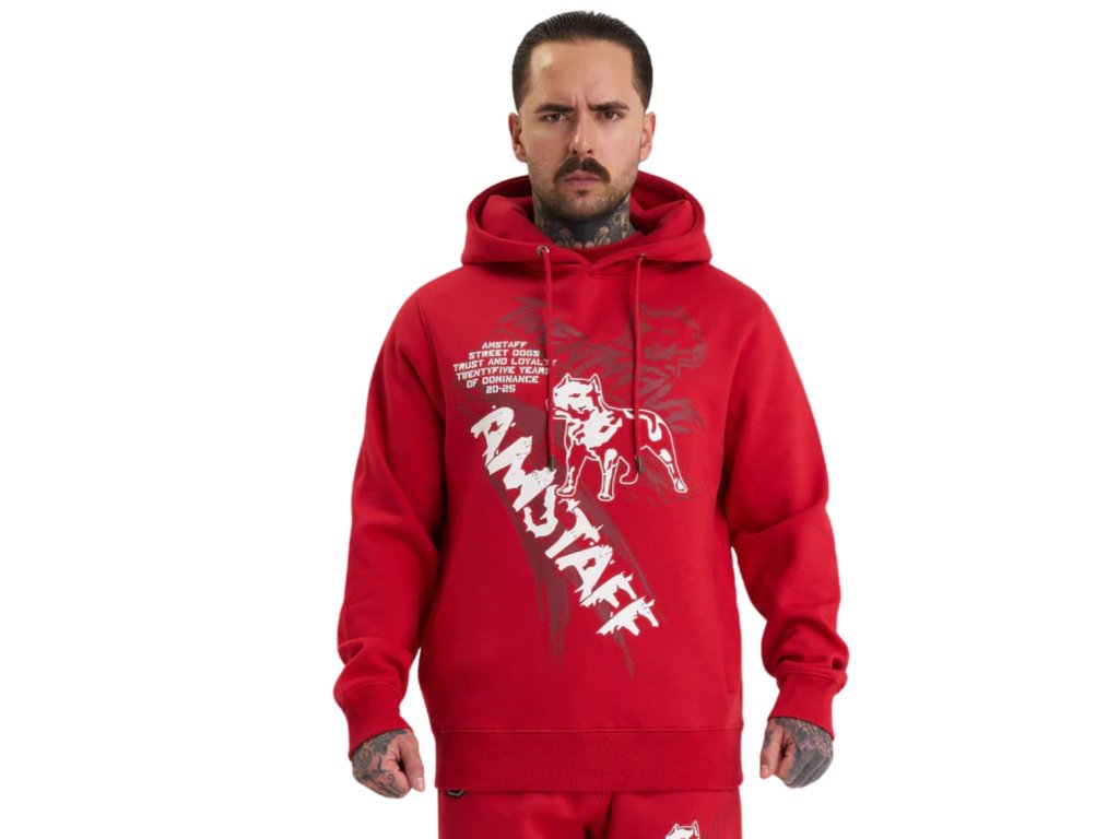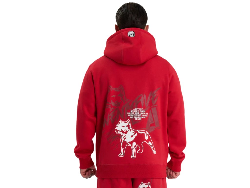 Táto mikina prináša neprehliadnuteľný štýl vďaka veľkému printu s motívom pitbulla na prednej aj zadnej strane. Kapucňa a rukávy sú zdobené celoplošným monogramovým vzorom, ktorý dodáva prémiový vzhľad. Nápis AMSTAFF zaručene upúta pozornosť a vystihuje tvrdý streetwear štýl.