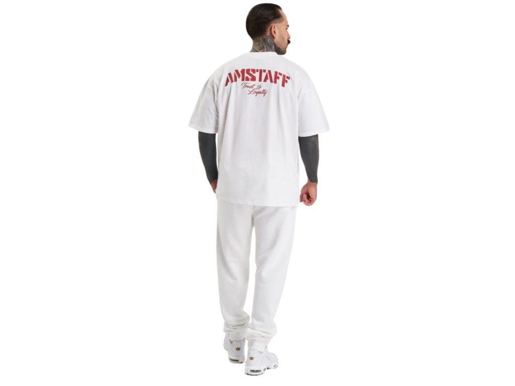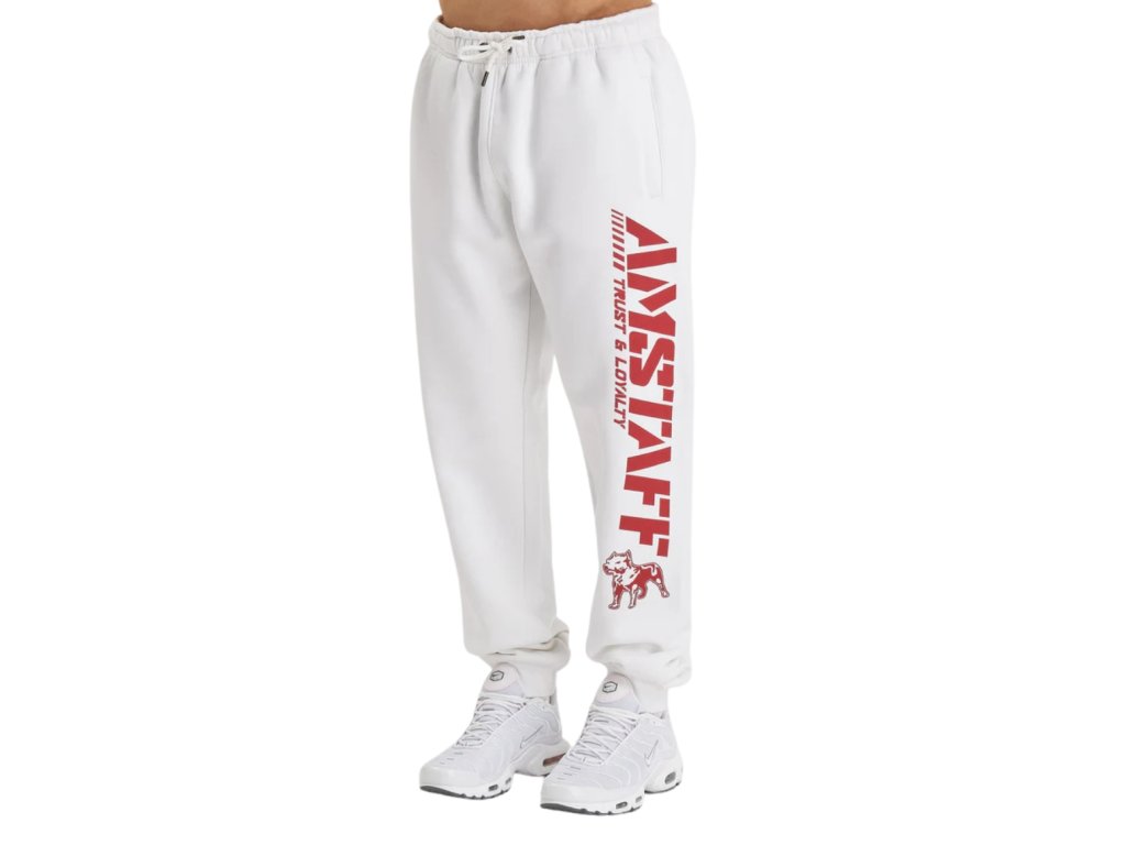 Štýlové tepláky Amstaff Logo 2.0 v bielej farbe s výraznou červenou potlačou. Na ľavej nohavici sa nachádza veľké logo značky, ktoré upúta na prvý pohľad. Elastický pás so šnúrkou zabezpečuje pohodlné prispôsobenie. Nad zadným vreckom sa nachádza malá potlač loga. Zadné vrecko je vybavené zipsom pre bezpečné uloženie drobností. Tepláky majú pohodlný strih a z vnútornej strany sú mäkko zateplené.