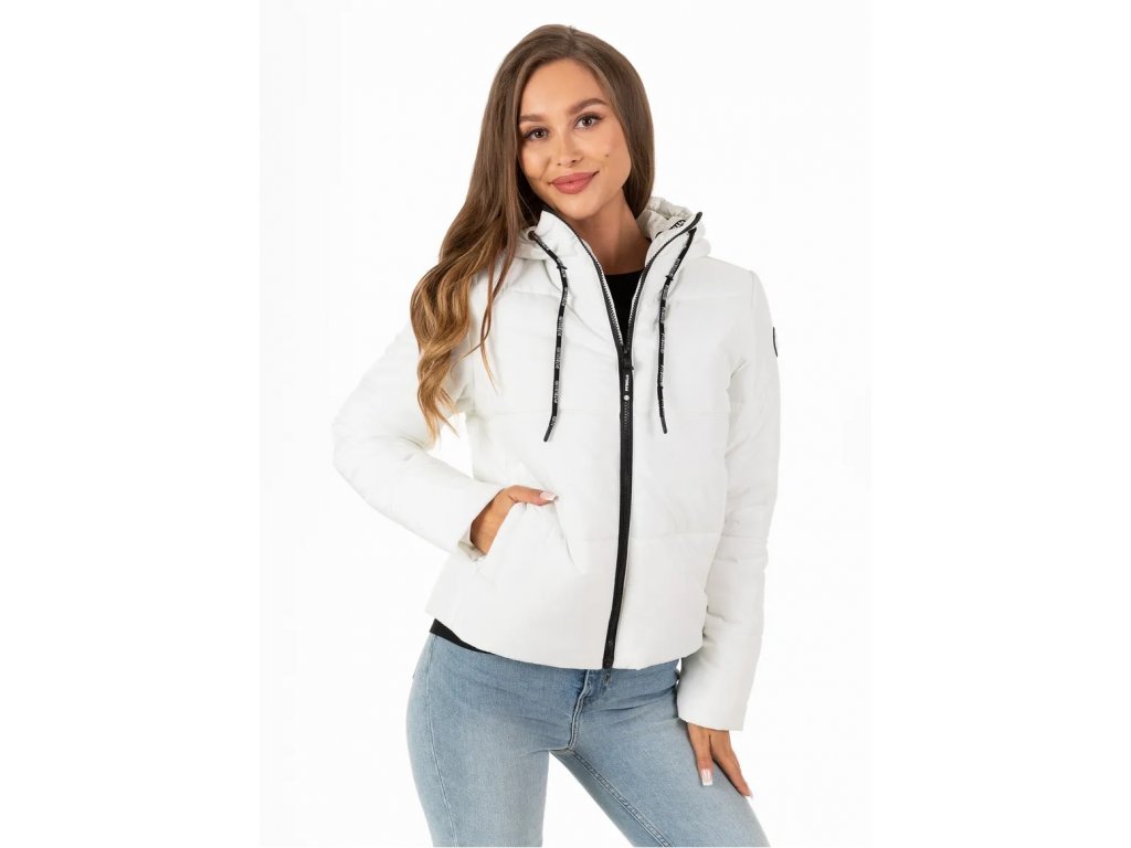 Bunda je vyrobená z materiálu s nasledujúcim zložením: 100% polyester, s podšívkou a výplňou z 100% polyesteru. Je v bielej farbe .
