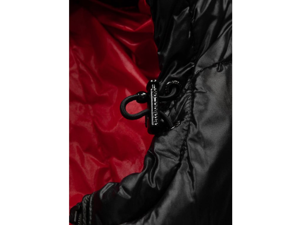 - zateplená integrovaná kapucňa s vysokým stojačikom, nastaviteľná gumenou šnúrkou so stopkami
