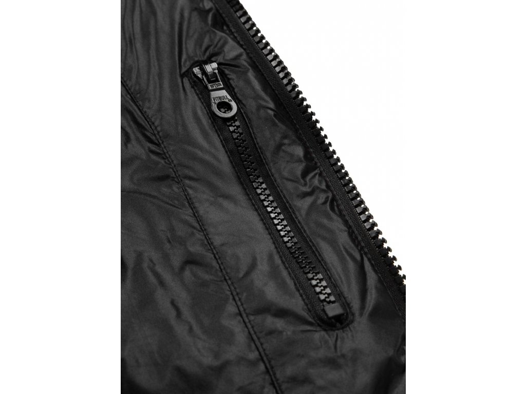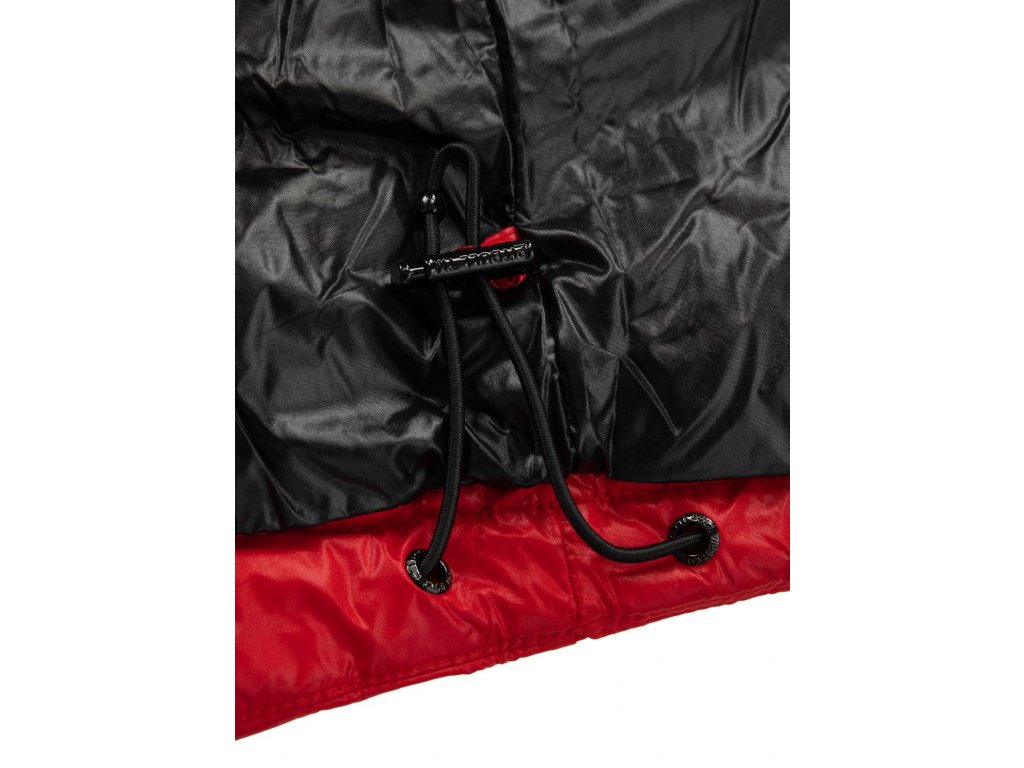 - zateplená integrovaná kapucňa s vysokým stojačikom, nastaviteľná gumenou šnúrkou so stopkami