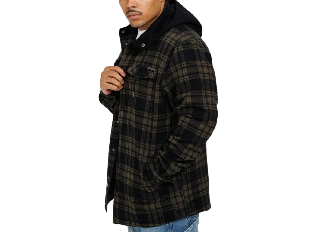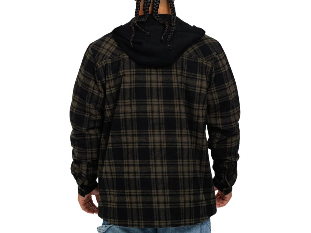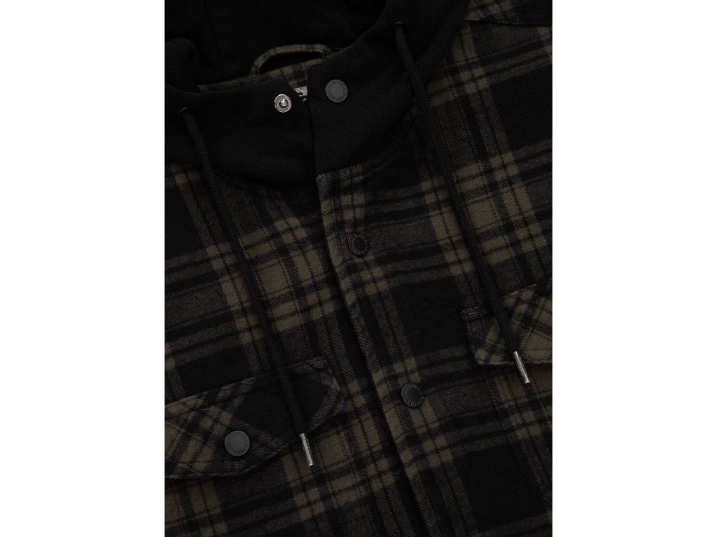 Pitbull West Coast mierne zateplená flanelová košeľa s kapucňou olive/black