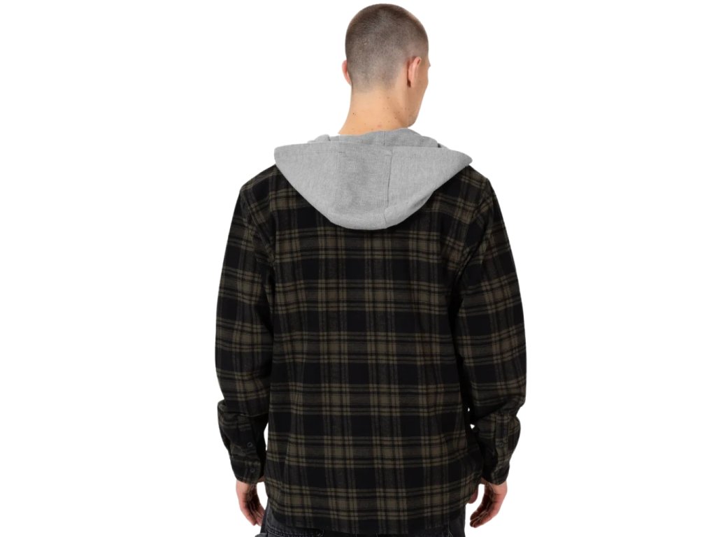 Pitbull West Coast mierne zateplená flanelová košeľa s kapucňou Woodson olive/black