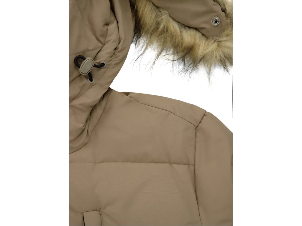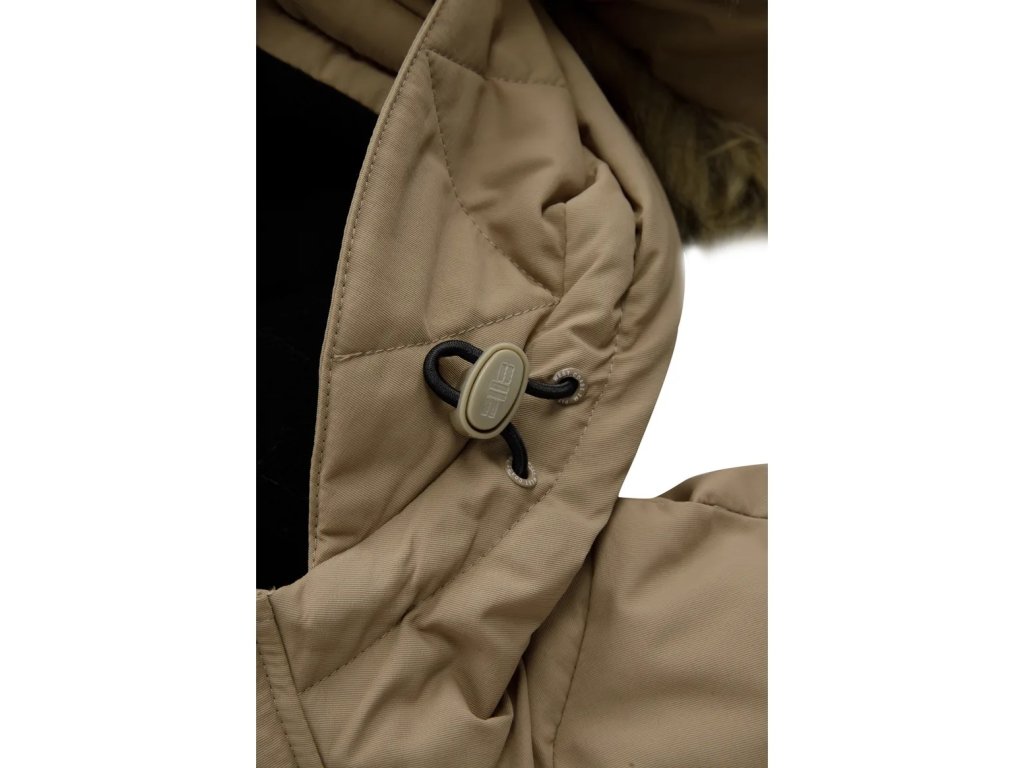 Bunda má integrovanú fleece zateplenú kapucňu s vysokým stojačikom a odnímateľnou kožušinou na patentky. Hĺbka kapucne je nastaviteľná pomocou popruhu s kovovou prackou. Má dve bočné vrecká na zips, zvislé vrecko na zips na hrudi a všetky zipsy majú kožené prívesky pre ľahké rozopínanie. Bunda disponuje aj praktickým vreckom vo vnútri.