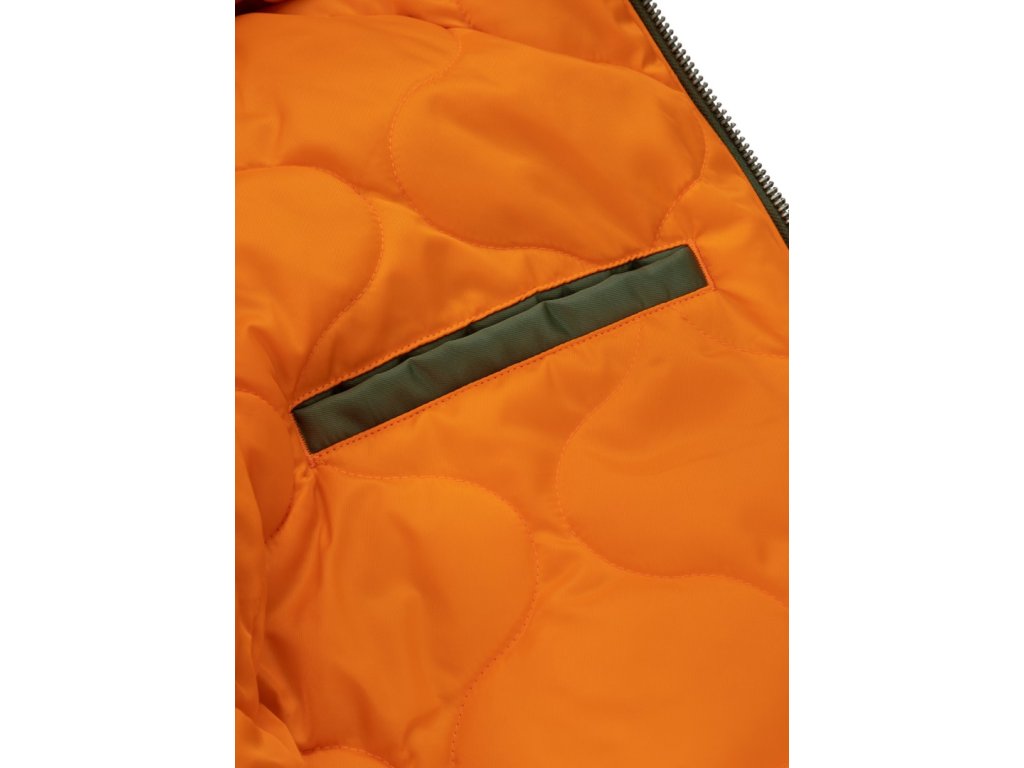 - celá bunda je zateplená prešívanou oranžovou polyesterovou podšívkou