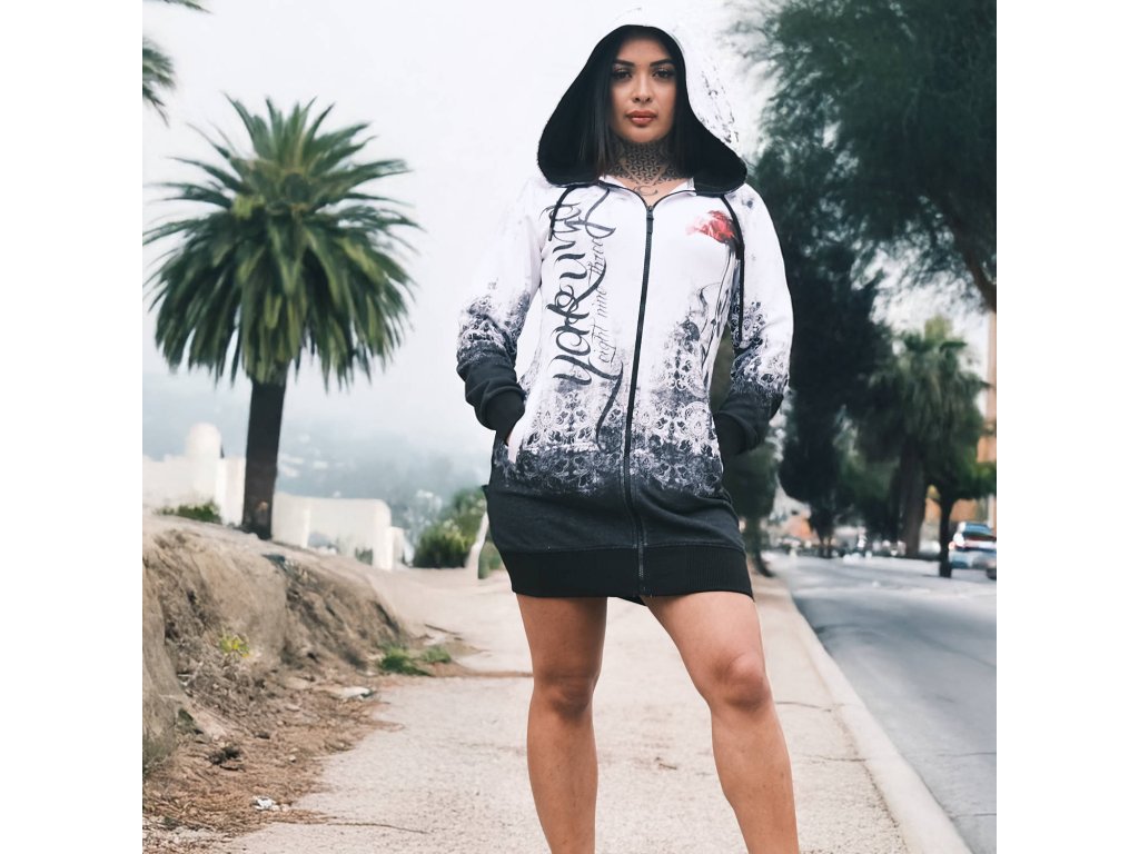 Dlhšia dámska mikina s kapucňou Yakuza Curtain je štýlovým kúskom, ktorý nesmie chýbať vo šatníku. Má pohodlný strih, ktorý nie je príliš dlhý, ani príliš voľný – jednoducho ideálny.